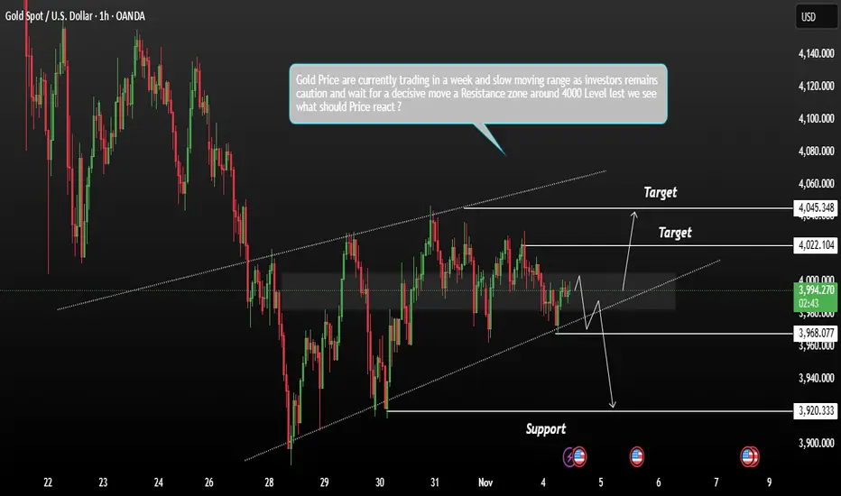 Gold prices are currently trading in a weak and slow-moving range, as investors remain cautious and wait for a decisive move.
