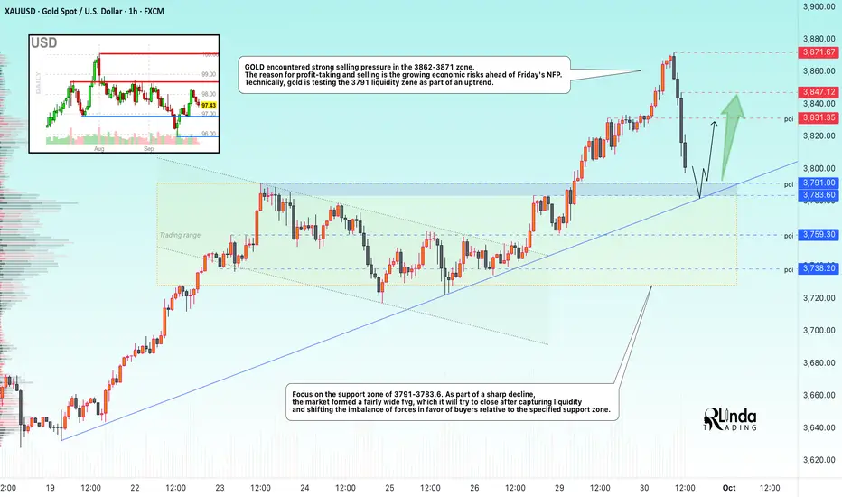 Technically, as part of the correction, the price is testing the upward support line, and the price reaction to the 3790-3780 zone will give hints about further movement...