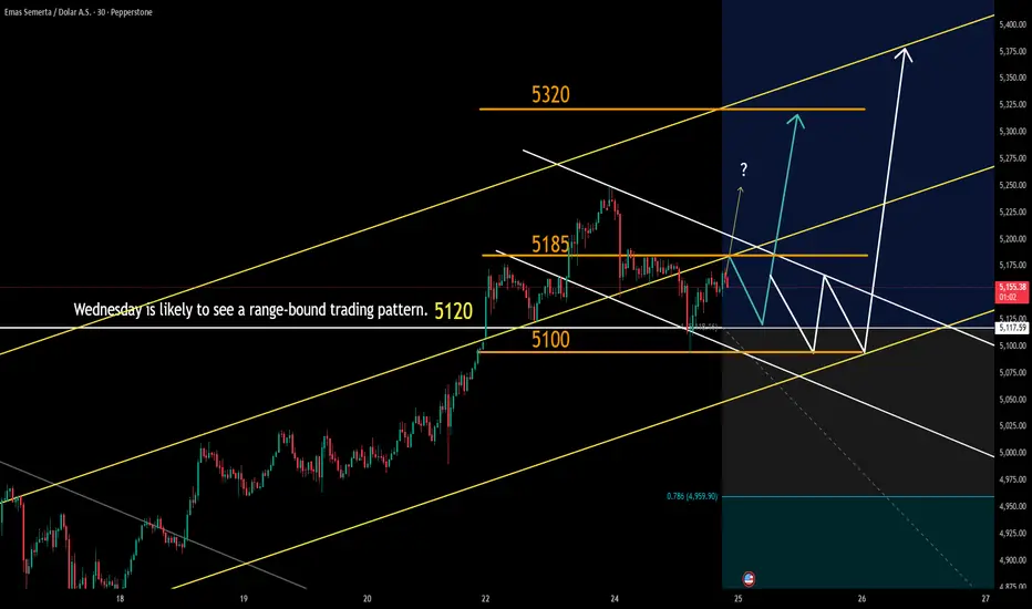 Seperti yang ditunjukkan dalam carta, harga emas turun naik antara $5100 dan $5185.