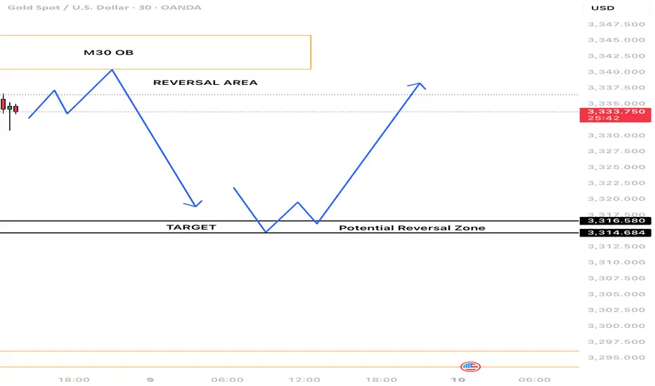 Gold is approaching a key M30 Order Block (OB) ๐ง, acting as a potential supply zone.
