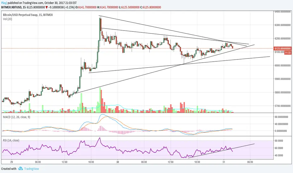 There is really no indication here of up or down but the way btc has been moving so quickly up in such a short time period you have to anticipate these moves by taking good entry points and setting stop. if you wait for the breakout a lot of times you miss a lot if not all of the move.