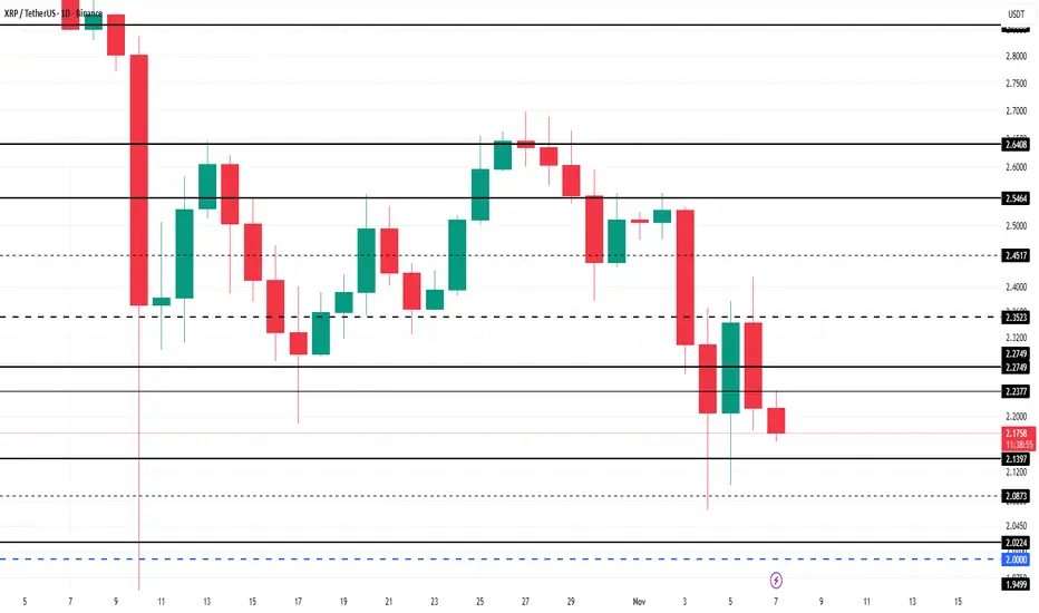 A drop to $2.00 would require XRP to break through supports at $2.13 and $2.02, both critical levels for short-term stability. If these fail to hold, the altcoin could experience accelerated losses.