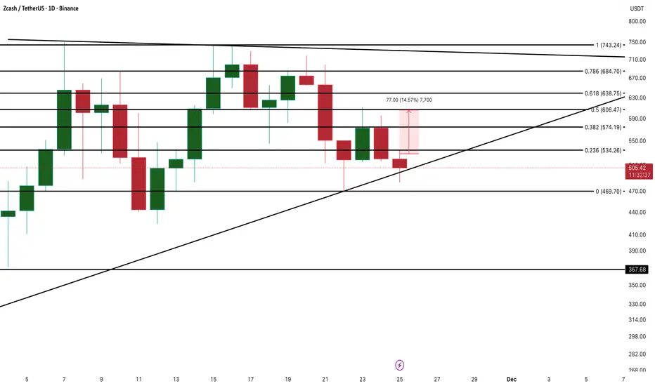 Momentum readings add extra confirmation. Between 30 October and 24 November, price made a higher low while the RSI made a lower low — a hidden bullish divergence that usually supports continuation. A similar signal in early November triggered a rally of more than 74%. MFI has also turned up while price pulled back, showing dip-buying strength. These signs help the triangle case but mean little unless