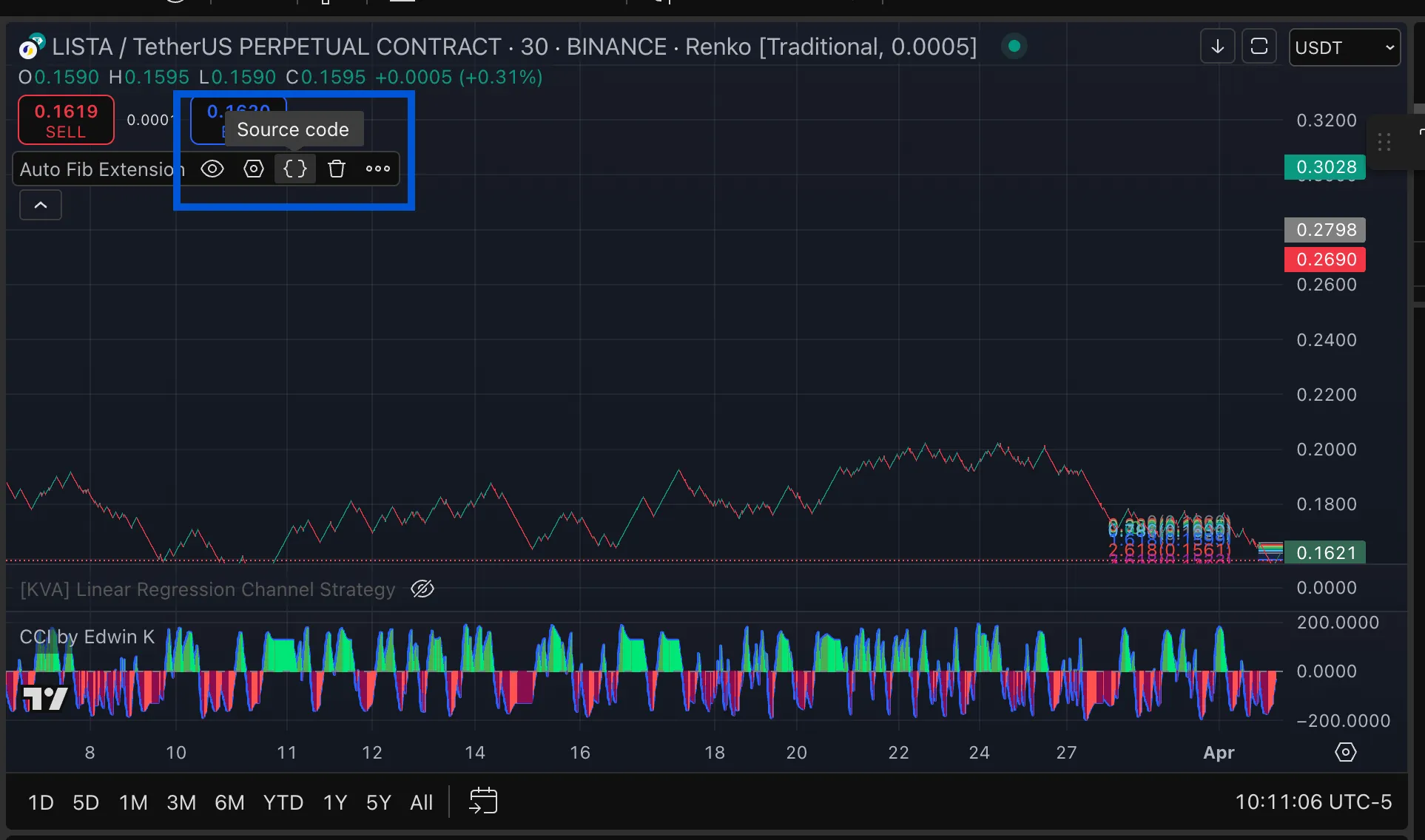 When a user adds the script to their chart, they can also view the source code in the Pine Editor at any time by selecting the “Source code” option in the script’s status line: