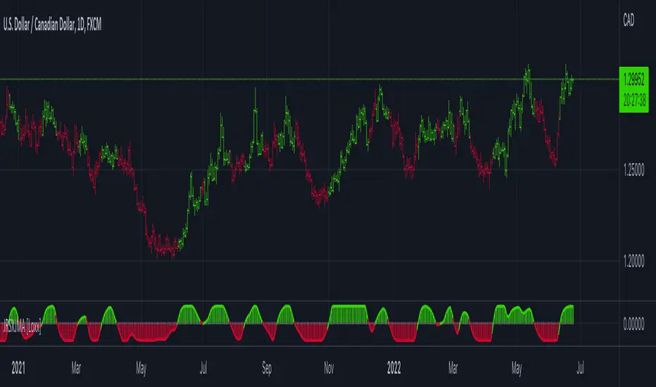 Jurik RSX on JMA [Loxx] is identical to indicator RSI RSX, except that price data is pre-smoothed by JMA. Doing so extends the range of RSX and produces fewer micro reversals. That lends itself to advanced analysis. Output Range: -100 to +100.