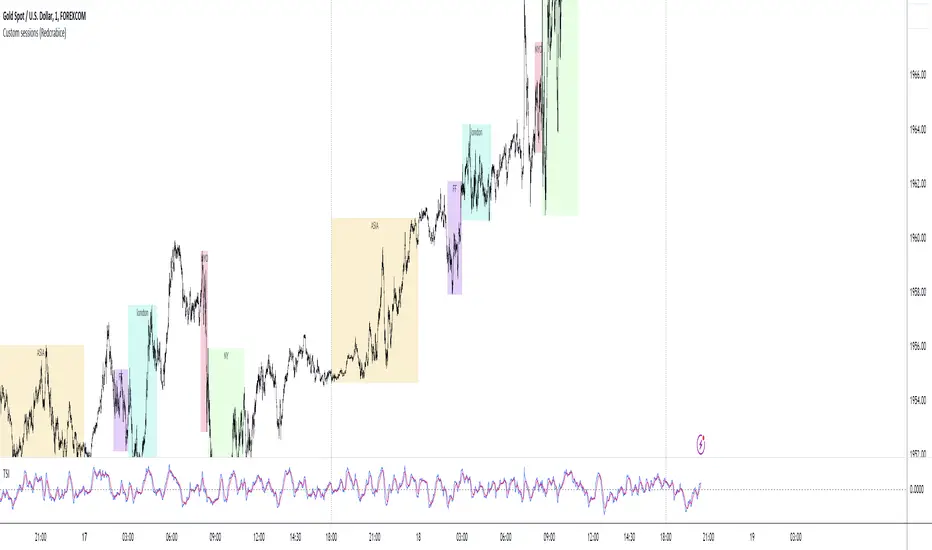 I created a simple script that show the most 5 important sessions. i know that there are many other "sessions" scripts out there but most of them doesnt do what i want and some even lag alot because of the amount of codes. so i decided to create a simple browser friendly script that show 5 most important sessions. asia , frankfurt, london , newyork open and newyork along with 5 custom session for your own liking.