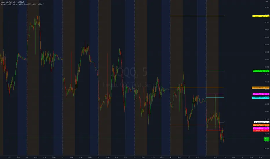 Version Update:Fixed Vertical Line Issue: Resolved an issue where levels were incorrectly plotting as vertical lines on the first bar of the trading day. The lines are now correctly plotted horizontally from the start by adjusting the x2 coordinate to bar_index + 1.