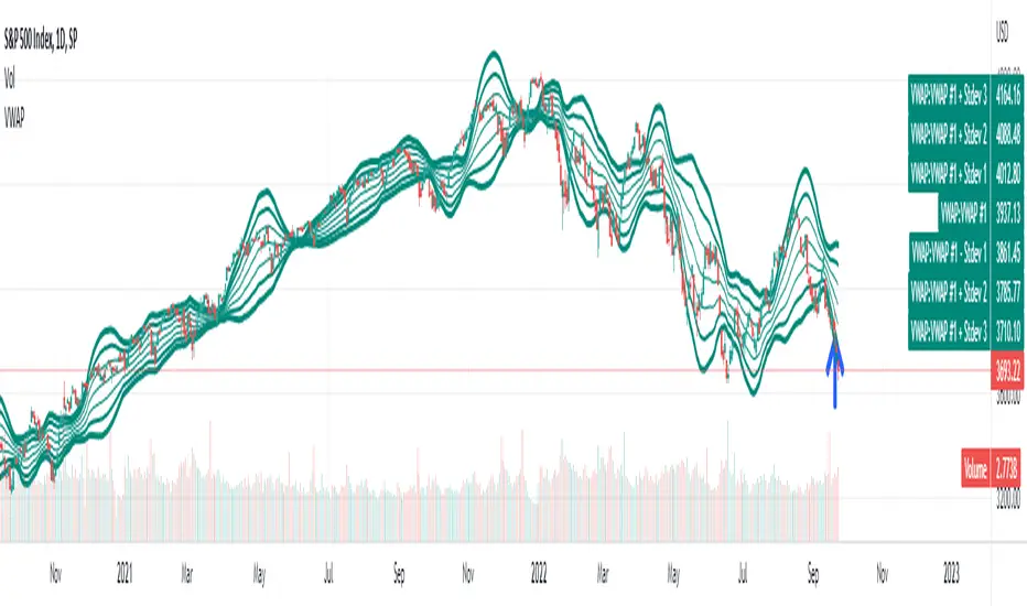 A lot of VWAP scripts are anchored and only allow single VWAP additions. This script allows up to 5 simultaneous VWAPs, for example monthly, quarterly, yearly, 3 years, etc. Can also be used on smaller timeframes. The non-anchored part of the script allows it to be constantly rolling, with no resets.