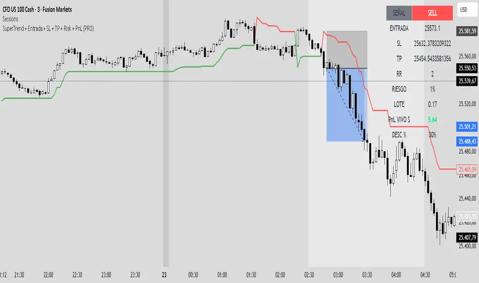 SuperTrend + Entrada + SL + TP + Risk + PnL (PRO)