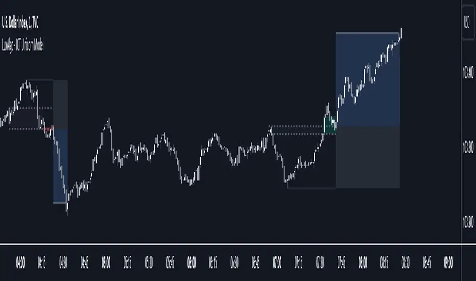 The ICT Unicorn Model indicator highlights the presence of "unicorn" patterns on the user's chart which is derived from the lectures of "The Inner Circle Trader" (ICT).