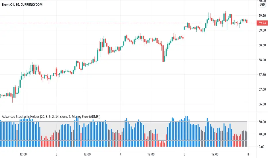 Advanced Stochastic Helper is an Stochastic Oscillator combined with an multiple SMA source :