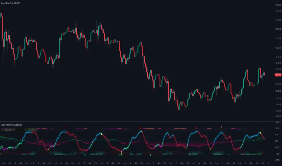 The Nautilus Oscillator by BigBeluga is an advanced technical analysis tool designed to help traders identify trend direction, strength, and potential reversal points in the market. This versatile indicator combines multiple analytical elements to provide a comprehensive view of market conditions.