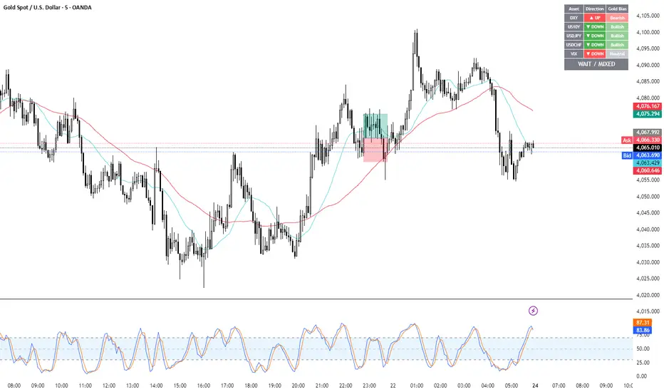 According to market logic, Gold is heavily influenced by the US Dollar (DXY), US Treasury Yields (US10Y), and global risk sentiment (USDJPY/VIX). This script helps you spot the trend in seconds.