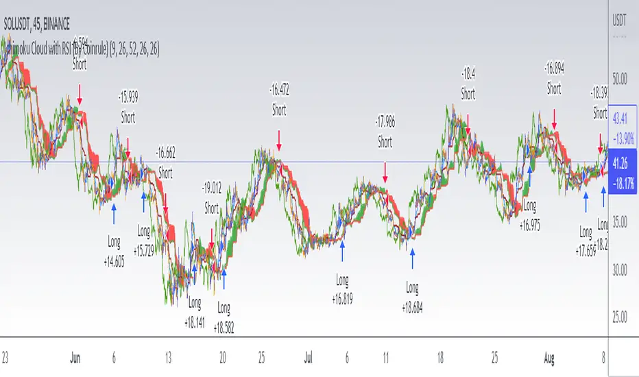 This strategy combines the Ichimoku Cloud with the RSI indicator to better enter trades.