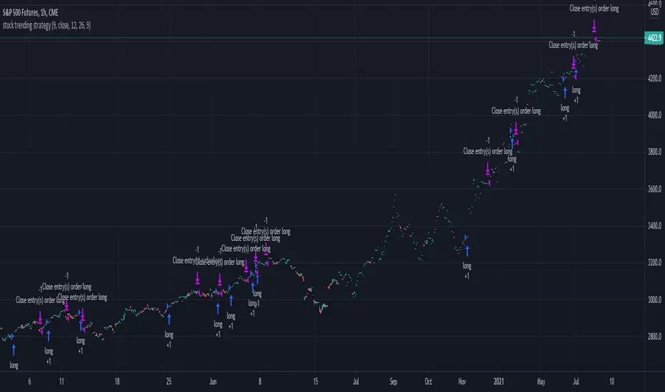 This is a long only strategy designed maily for stock markets and futures. In general it works best with 1h, however it can be optimized with other timeframes as well.