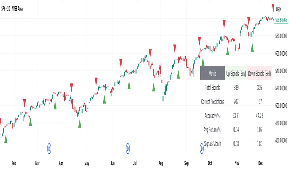 [DEM] Relative Strength Signal (With Backtesting) is a momentum indicator that generates trading signals based on when an asset reaches its highest or lowest relative strength compared to the SPY benchmark over a 20-period lookback window. The indicator calculates relative strength by dividing the current asset's price by SPY's price, then triggers buy signals when this ratio hits a 20-period high (indicating maximum outperformance) and sell signals when it reaches a 20-period low (indicating maximum underperformance). To prevent signal clustering and improve practical utility, the indicator includes a built-in filter that requires a minimum number of bars (default 20) to pass between signals of the same type, ensuring adequate spacing for meaningful trade opportunities. The system includes comprehensive backtesting functionality that tracks signal accuracy, average returns, and signal frequency over time, displaying these performance metrics in a detailed statistics table to help traders evaluate the effectiveness of trading on relative strength extremes versus the broader market.