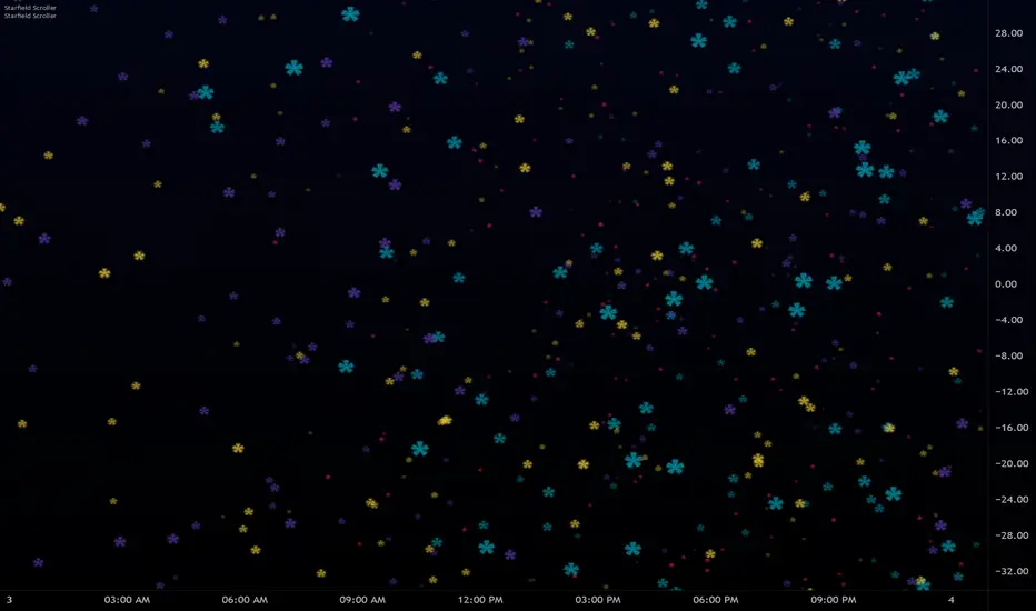 This script creates a visually appealing starfield effect on your chart. It generates and animates multiple star fields, each customizable with its own parameters. Explore the input options to adjust the number of stars, their speed, and color.