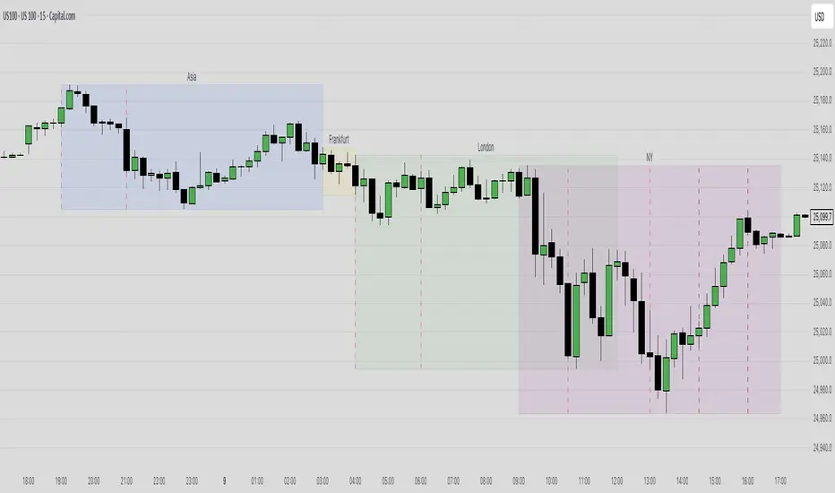 Brimstone Session Indicator highlights global trading sessions (Asia, London/Frankfurt, New York) and key Kill Zones, showing when real liquidity and volatility enter the market.