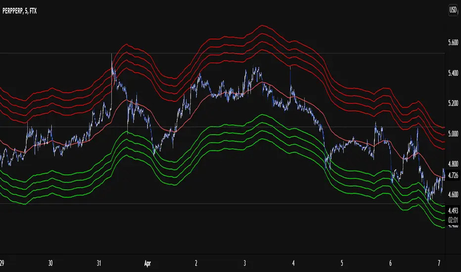 EMA (Exponential moving average) often acts as dynamic support and resistance and trend detector and the further price is away from ema the more it has chance to reverse, hence percentage levels gives a range to exit your trades.