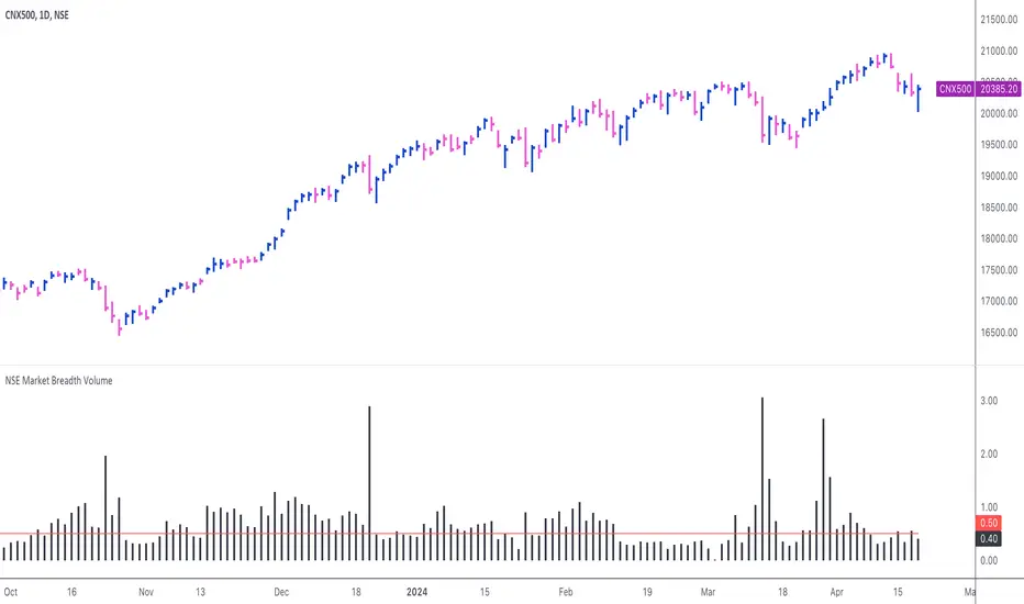 Market Breadth Volume (MBV) is defined as the ratio between the count of stocks giving a volume 1.5 times greater than its 20-day SMA, and the count of stocks giving a volume 0.5 times lesser than its 20-day SMA. This breadth indicator reflects participation in the markets. A sloping upward MBV shows that money is coming into the market.