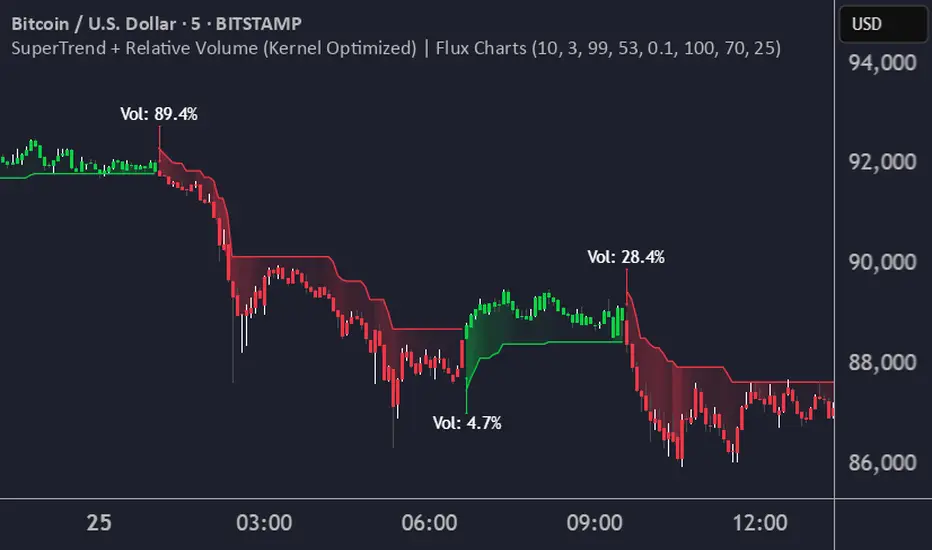 Telah dikemas kini SuperTrend + Relative Volume (Kernel Optimized)