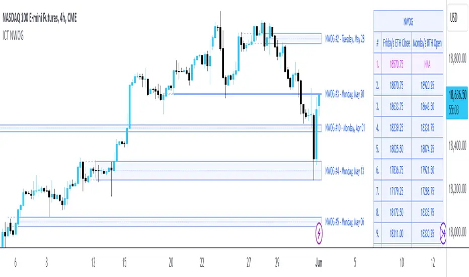 There is also the option to hide the current NWOG. This was not added for any particular reason. It's just there in case anybody wants to use it for whatever reason. Note: the price levels will still be visible in the table on the right, but the box won't be plotted on the chart.