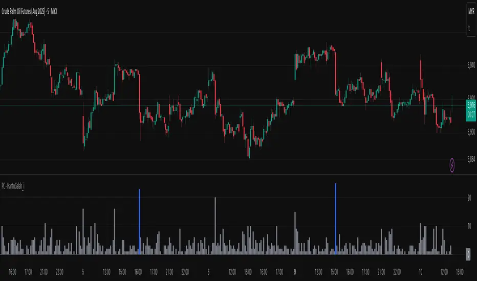 The PC - Hantu Galah indicator is a powerful tool designed for traders seeking to identify significant market momentum and volatility shifts. This indicator features a histogram graph that dynamically adapts to candle size and historical comparisons to highlight critical trading opportunities.