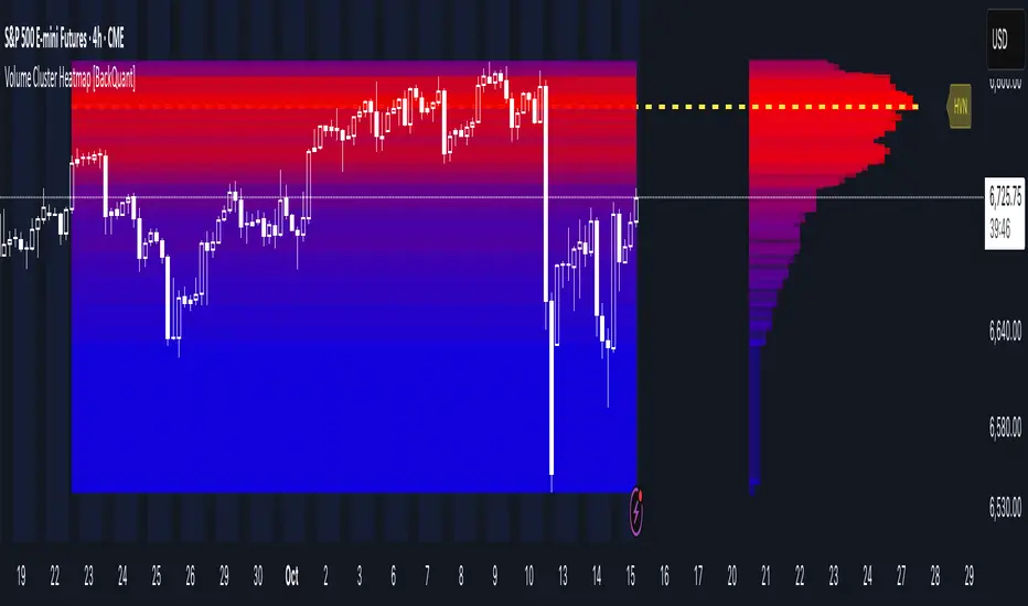 A visualization tool that maps traded volume across price levels over a chosen lookback period. It highlights where the market builds balance through heavy participation and where it moves efficiently through low-volume zones. By combining a heatmap, volume profile, and high/low volume node detection, this indicator reveals structural areas of support, resistance, and liquidity that drive price behavior.