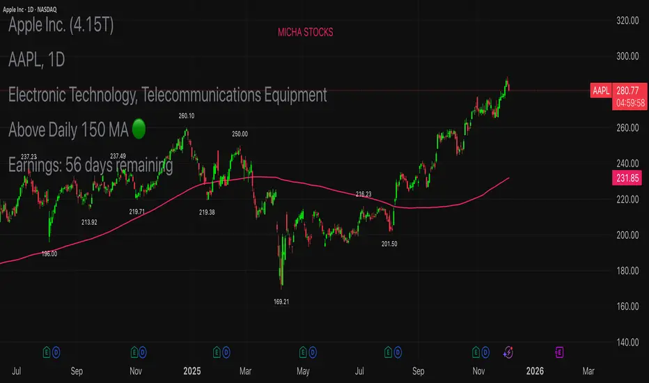 - **150 Moving Average Position**: Instantly see if price is above or below the critical 150-day MA