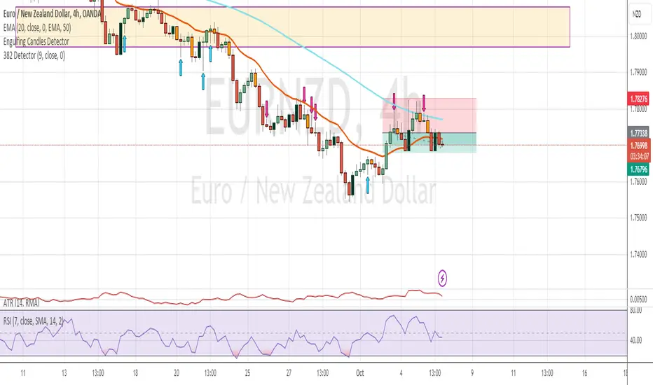 If a bearish 382 candle is detected, a pink arrow will be displayed on the top of the candlestick.