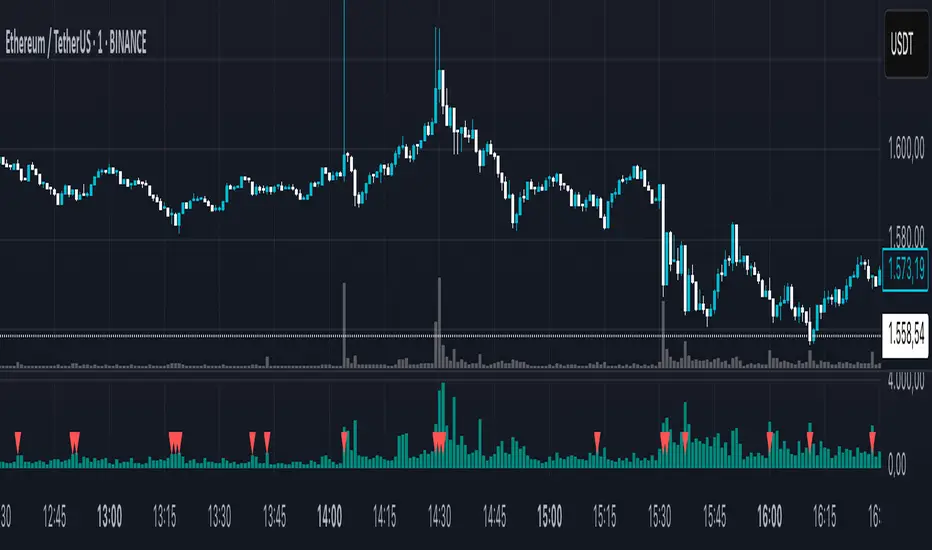 It identifies and optionally smooths or excludes high “climax” candles to provide a clearer view of natural volume trends during pullbacks and consolidations.
