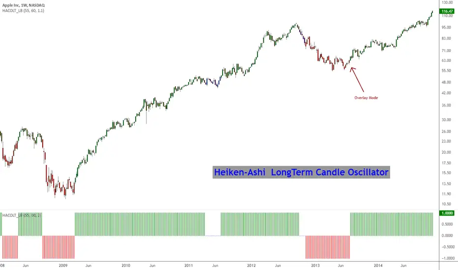 HACOLT (Heikin Ashi Candles Oscillator Long Term) is a technical indicator designed by Sylvain Vervoort. It is based on Mr.Vervoort's other indicator, HACO (Heikin-Ashi Candles Oscillator - posted here: tradingview.com/v/UyhY8FuQ/).