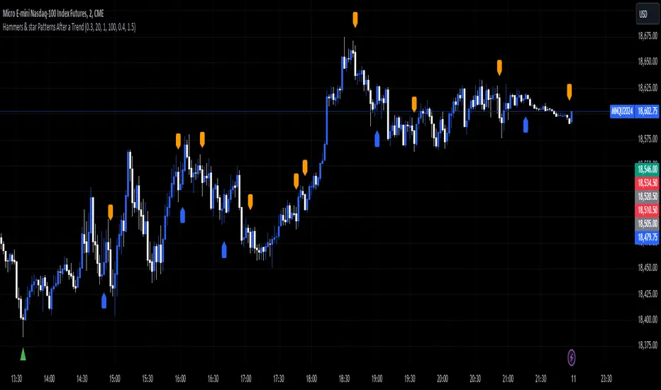 Hammers & star Patterns After a Trend