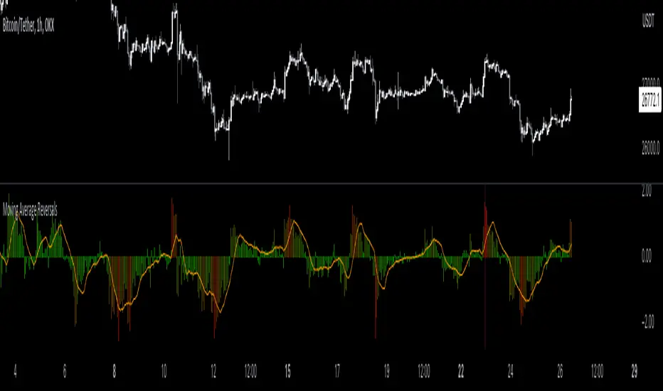 The Moving Average Reversals indicator gives a quick visual representation of when a stock gets extended up or down from a user selected moving average.