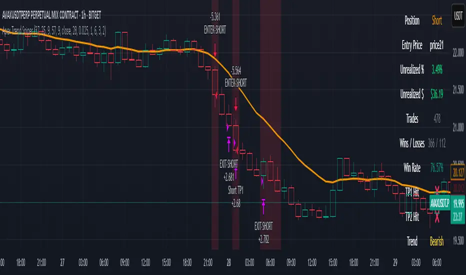 The Apex Trend Sniper is an advanced, fully automated trend-following strategy designed for crypto, forex, and stock markets. It combines momentum analysis, trend confirmation, volume validation, and adaptive risk management to capture high-probability trades. Unlike many strategies, this system is 100% non-repainting, ensuring reliable backtesting and real-time execution.