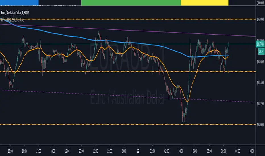 This indicator provides 2 separate exponential moving averages and Quarters Theory Lines on 50 pip intervals above and below current price. Useful for trading the harmonic pitchfork strategy.
