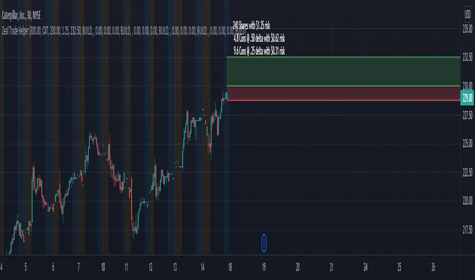 The indicator will display a visual trading plan based on the inputs you entered on each individual stock's chart. The trading plan will have a green box and red box to represent your entry, target, and stop loss.