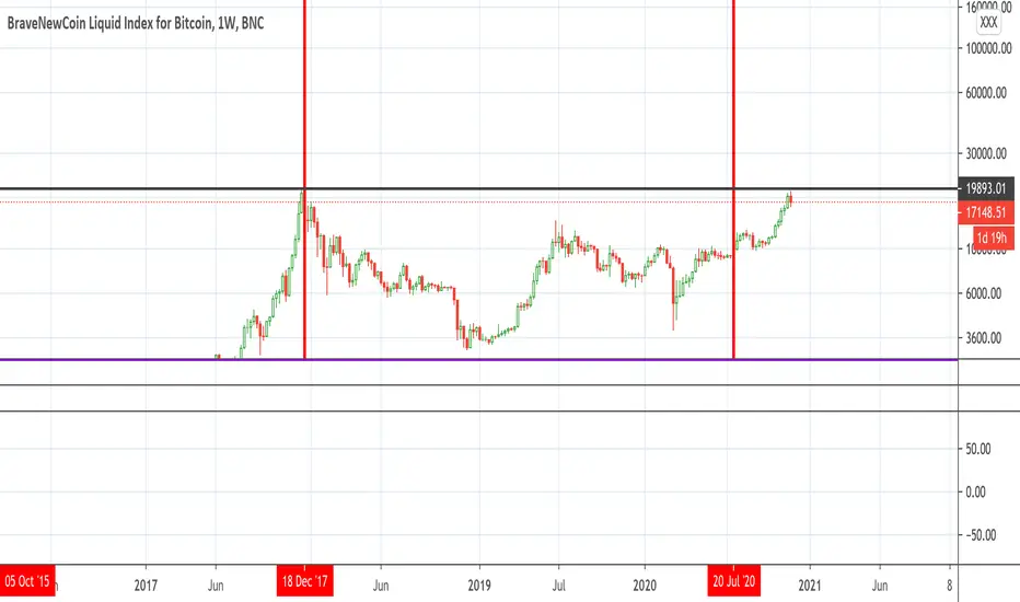 This indicator measures the risk of buying/selling BTC at a certain price. It calculates the percentage difference between the 20 weekly SMA and price at the weekly close. This indicator is designed to be used under weekly scale.