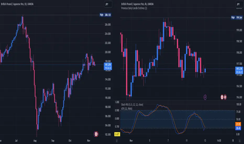 Color-Coded Outlines: Automatically change the outline color based on whether the previous day's candle was bullish (green by default) or bearish (red by default).