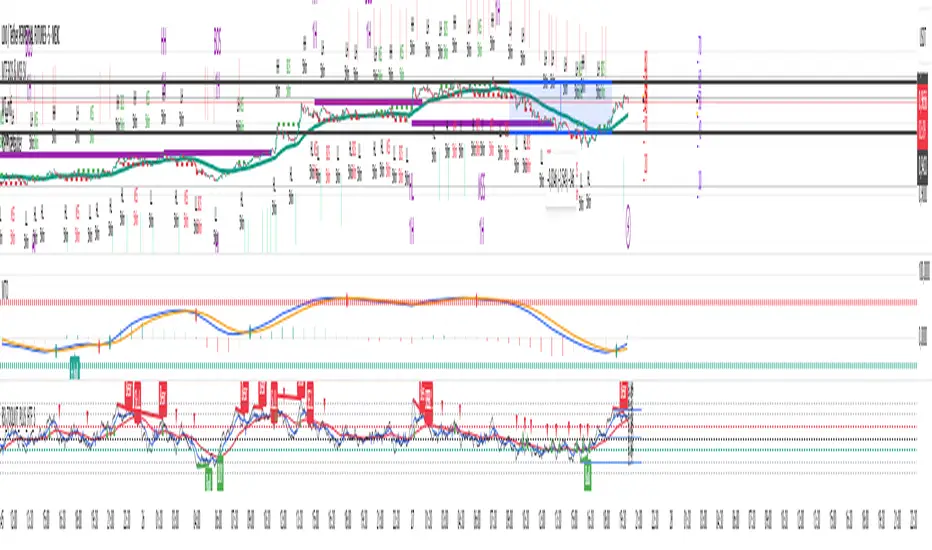 Индикатор объединяет анализ RSI, скользящих средних RSI (EMA/WMA), дивергенций, автоматические уровни поддержки/сопротивления на RSI, «лестницу цен» для целевых уровней RSI и фильтр тренда со старшего таймфрейма (HTF).