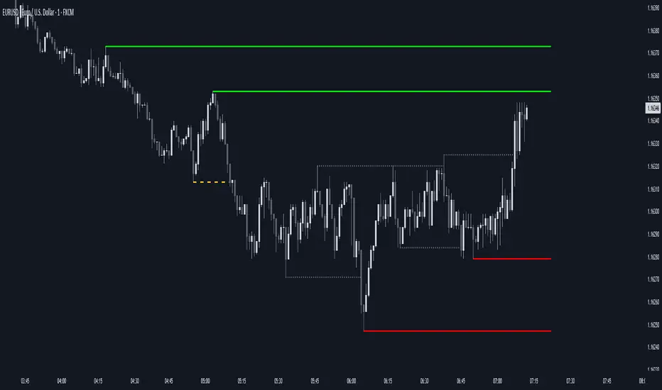 3. Session Highs & Lows – Highlights the Asian, London, New York, or user-defined session extremes where liquidity commonly pools.