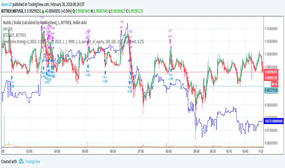 Need to set currency to usd, adjust hh and ll to highs and lows in $. Set trade quantity to 100% and commision to .25%