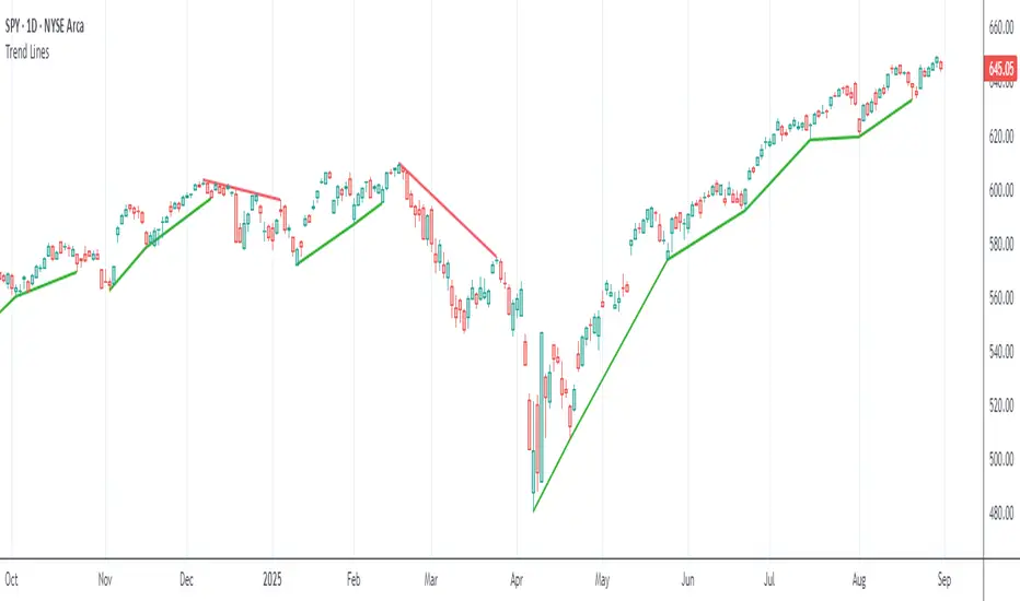 Sometimes the simplest indicators help traders make better decisions. This indicator draws simple trend lines, the same lines you would draw manually.