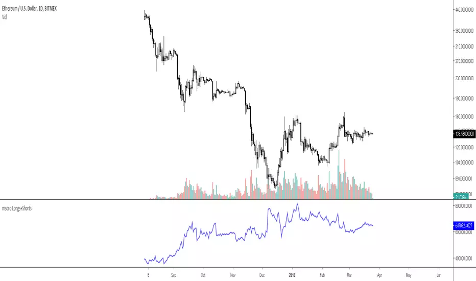 It charts the sum of open long and short positions. Useful for determining speculation levels on a cryptocurrency.