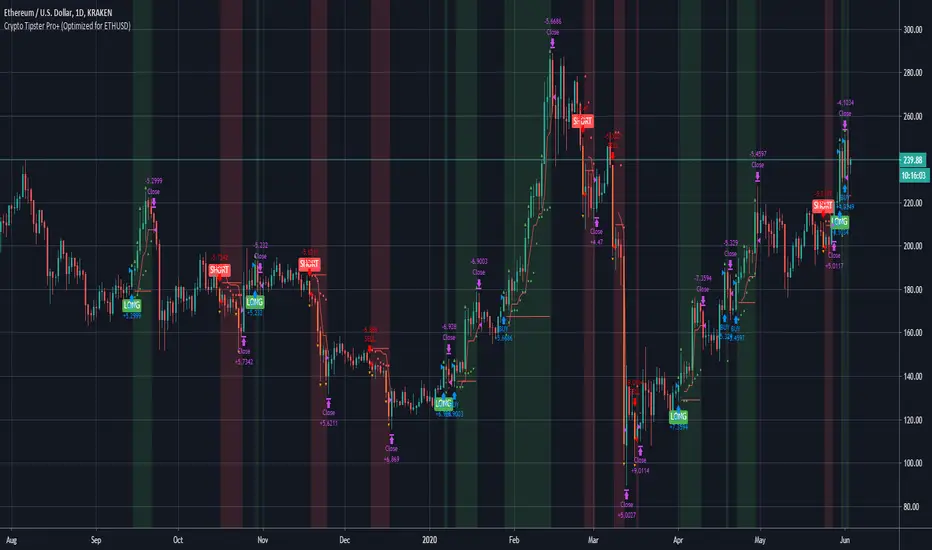 This script is a carbon-copy of our Crypto Tipster Pro Strategy, but also includes our Custom & Fully Optimized Settings for turbo-charging your Ethereum (ETHUSD) trading.
