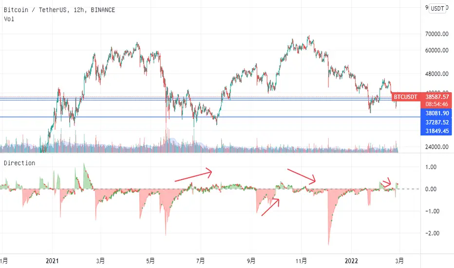 EMA of intrabar-volatility-weighted price change minus EMA of price change. It puts more weights on candles that have large volatility inside, and assumes that the direction of those high-volatility candles are more meaningful than low-volatility ones. Therefore, we take the difference between the volatility-weighted price change and the regular price change and plot the EMA. The indicator may be used as a tool to find divergence and potential reversal, or hints of continuation of a strong trend. Note that this indicator can change a lot with different time frames and settings, so take care to backtest before using. Recommended settings are 15m resolution for time frames longer than 4H and 1m resolution (with 200 EMA length) for time frames below 4H. The resolution is used to find the intrabar volatility.