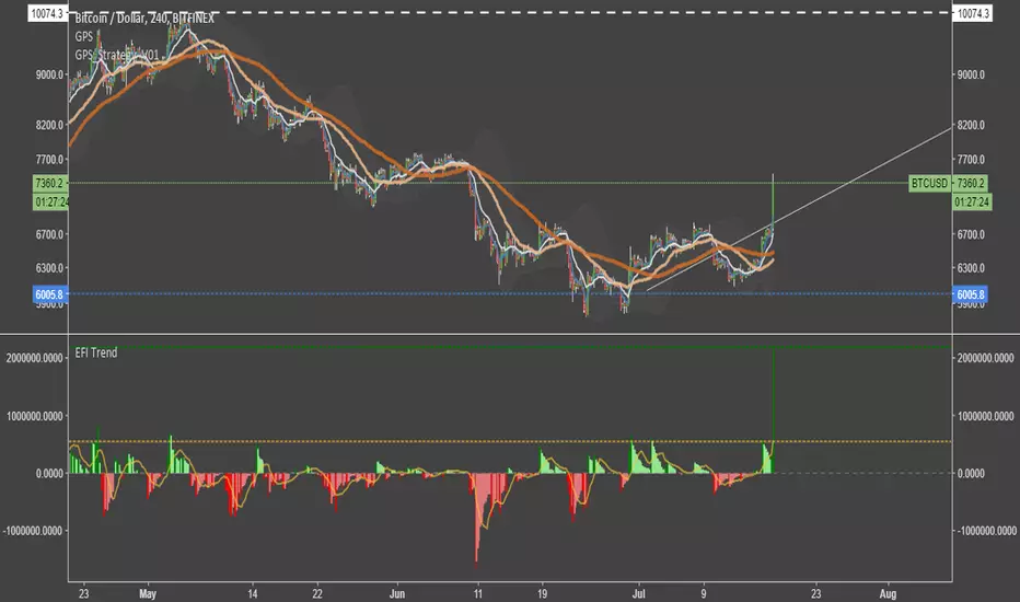 Momentum based strategy. This is work in development, not really applicable for real trading yet. Looks great on 4H BTCUSD, or 1H ETCUSD lol. Generally should give really reliable entry points, exits, not so much. Will try to finish it up, when I find the time.