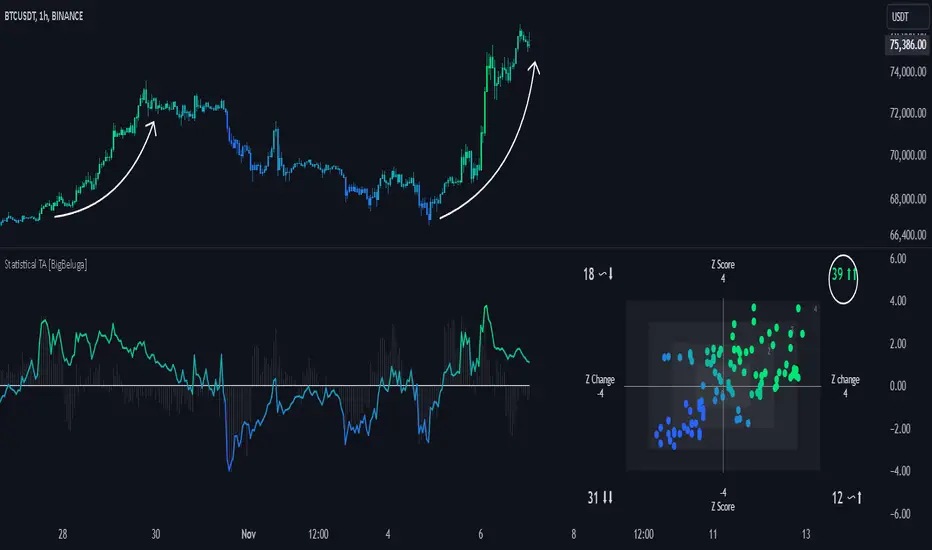 Statistical Trend Analysis (Scatterplot) [BigBeluga] provides a unique perspective on market dynamics by combining the statistical concept of z-scores with scatterplot visualization to assess price momentum and potential trend shifts.