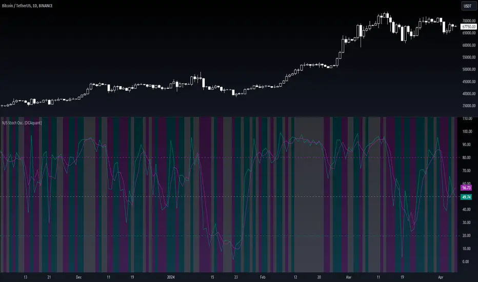 The Neutral State Stochastic Oscillator {DCAquant} is an enhanced version of the classic Stochastic Oscillator. This iteration aims to refine the detection of neutral market states — periods where the market is neither overbought nor oversold — potentially signaling a period of consolidation or equilibrium before the next significant price move.