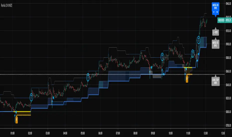 - Alerts added to indicator version: Change in Renko Trend Momentum (main trend flips), Pending Renko Trend Momentum Activation, Volatile Brick Production.